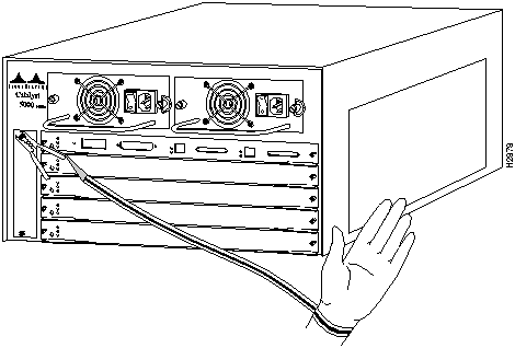 Electrostatic discharge damage (ESD), which occurs when electronic cards or components are improperly handled, can result in complete or intermittent failures. The supervisor engine module and switching modules each consist of a printed circuit card that is fixed in a metal carrier. Electromagnetic interference (EMI) shielding, connectors, and a handle are integral components of the carrier. Although the metal carrier helps to protect the cards from ESD, use a preventive antistatic strap whenever you handle the supervisor engine module or switching modules. Handle the carriers by the handles and the carrier edges only; never touch the cards or connector pins.