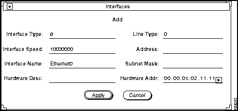 Figure 6-8 illustrates the Interfaces secondary window that is opened by double-clicking on the ether1 selection in the Interfaces scroll window. Secondary windows are opened from a primary window to enter and modify data in other related tables. These tables may have their own primary window, such as lines and people.
