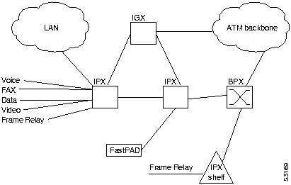 Similarly, the IPX may be configured as a shelf and used to provide a low-cost Frame Relay to ATM interworking concentrator for the BPX. The IPX shelf concentrates this traffic over an ATM trunk connected to the BPX. The IPX or IGX may also be configured as a co-located shelf and used as a low-cost ATM service input to the BPX.