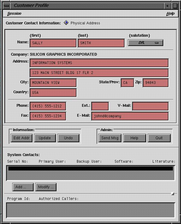 Customer Profile provides you with the tools to update your profile records in the customer information database. You can view all of the systems with which Silicon Graphics believes you are associated. An accurate profile ensures that you receive software updates and literature in a much more timely manner.