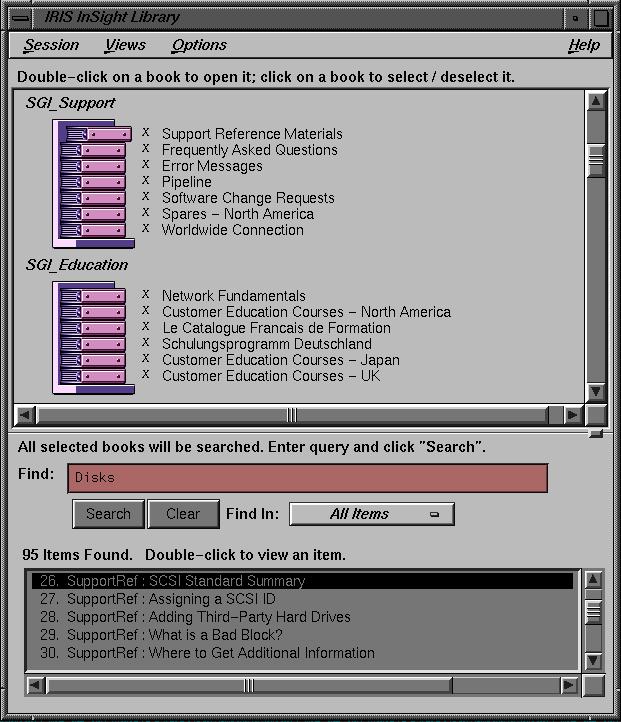 The IRIS Insight Viewing systems provides you with on-demand information. IRIS InSight is bundled with the IRIXTM operating system and uses such industry standards as X Window System (tm), Motif (tm), and SGML (Standard Generalized Markup Language). IRIS Insight combines ease of navigation with the most advanced of search algorithms giving you the ability to access detailed information in the Support Library quickly. Full media support in the viewer offers documents with in-line graphics, movies, and audio.