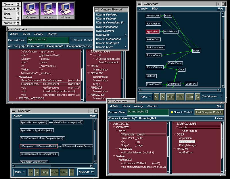 The various views are integrated, providing the ability to select a class or method in one view and display additional information about it in another view. The Class Information Window can be invoked by clicking on a class in the Class Graph, and the Call Graph can be pruned or populated from the Class Information Window. Also, Source View, the annotated textual viewer used by all WorkShop tools, can be invoked by clicking on a class in any of the views.