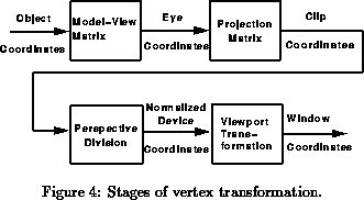 3D computer graphics uses matrix transformations to properly orient, view, clip, and map the model to the screen. OpenGL's various stages in mapping vertices in object coordinates into pixels in window coordinates are pictured in Figure 4.